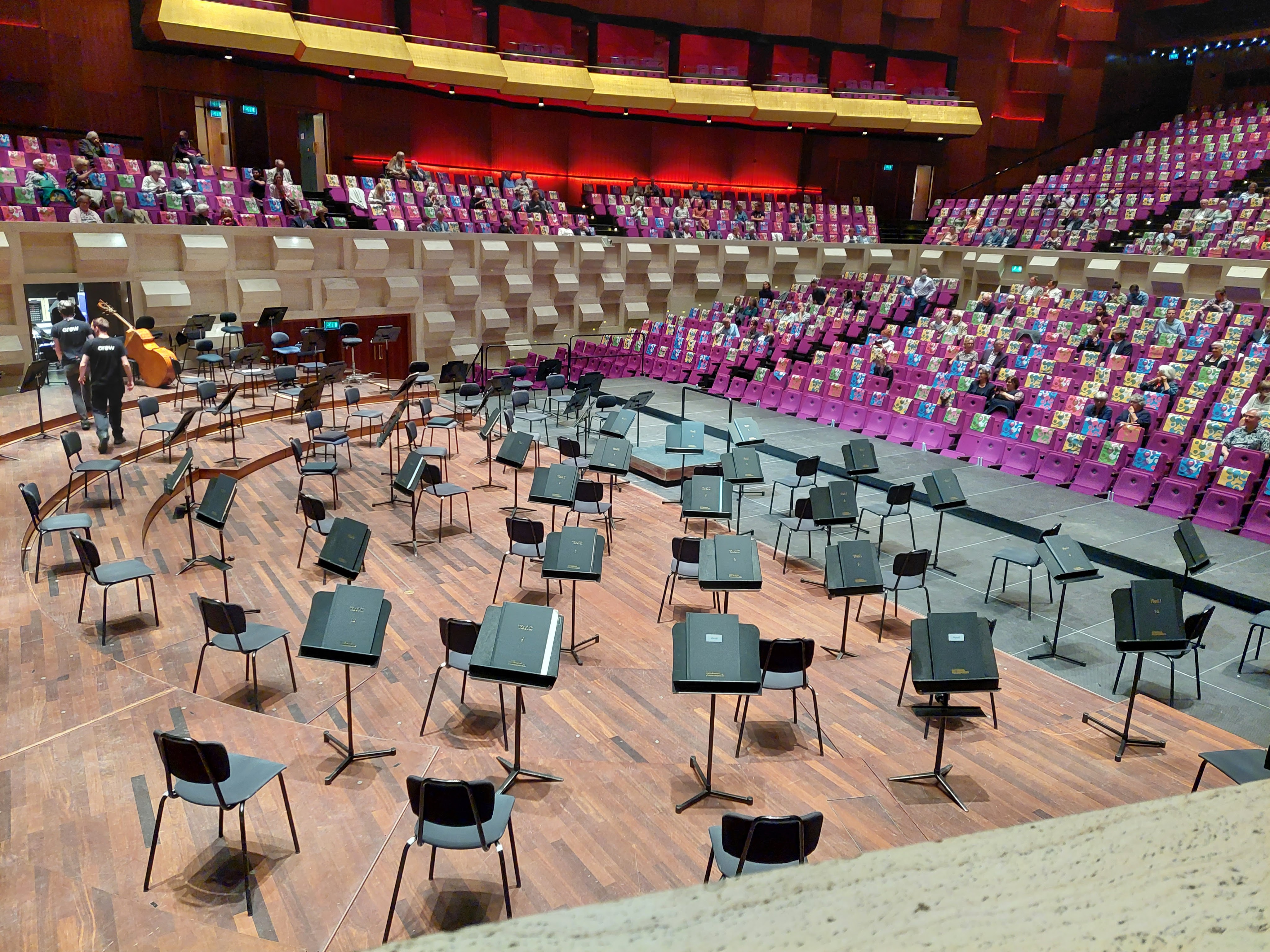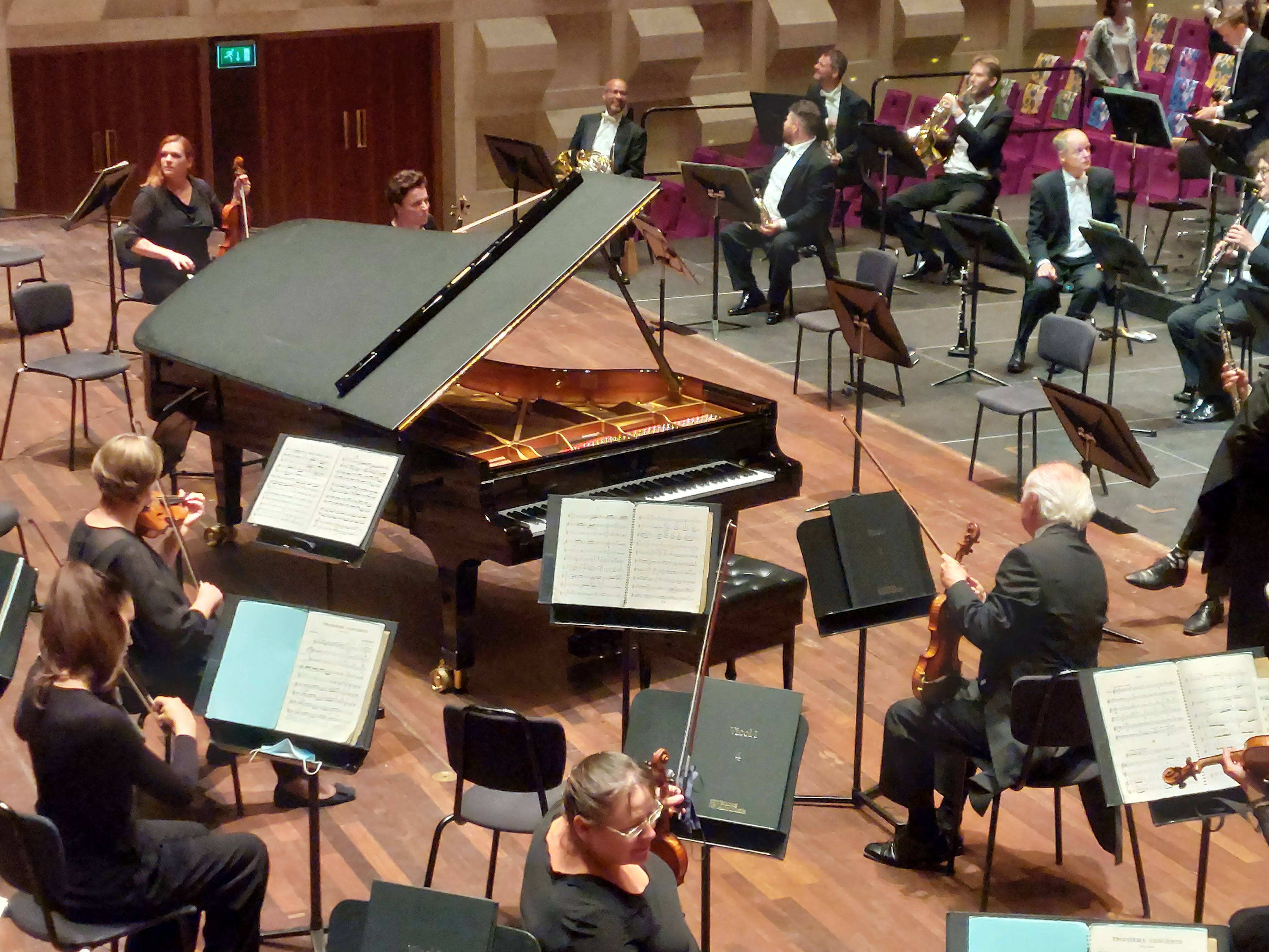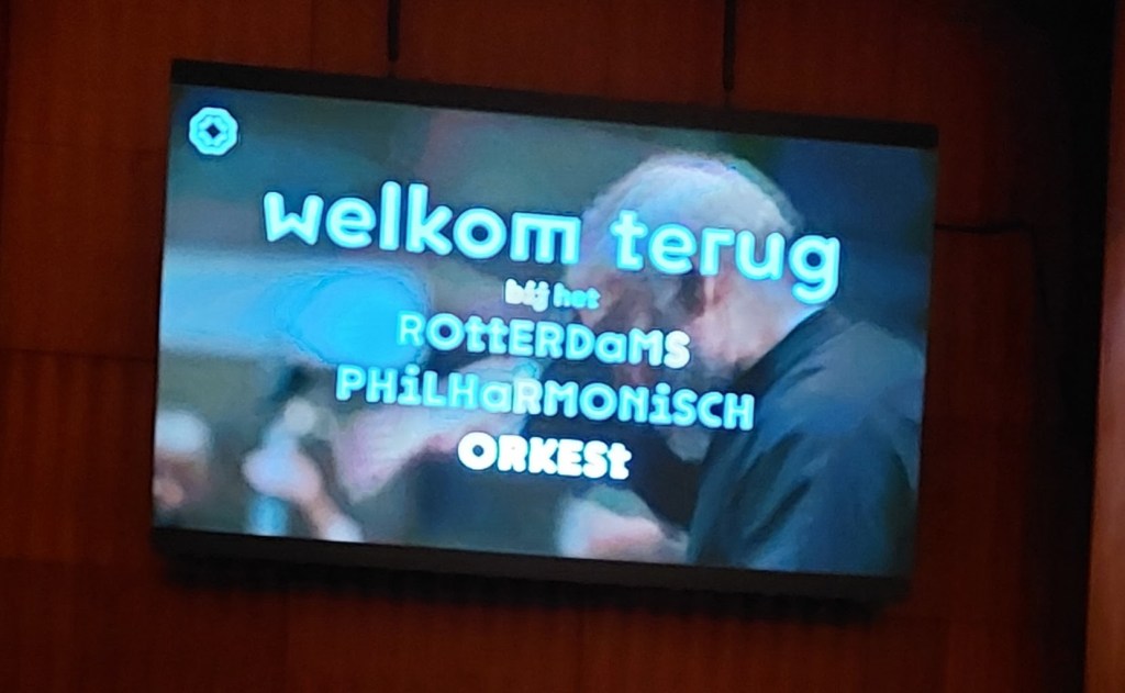 Gisteren ging ik weer naar De Doelen in Rotterdam. De seizoensafsluiting(seizoen 2019-2021?) met op het programma het 3e Pianoconcert van Prokofjev en de 5e Symfonie van Tsjaikovski. Het was wel even vreemd. Mondkapjes op, behalve als je op de plaats zat, en veel minder bezoekers. Geen vaste plaats maar toch wist ik op mijn favoriete plek te komen. Het podium was ook veel groter dan normaal en de plaatsen die niet bezet mochten worden waren gemarkeerd door vrolijke doeken.