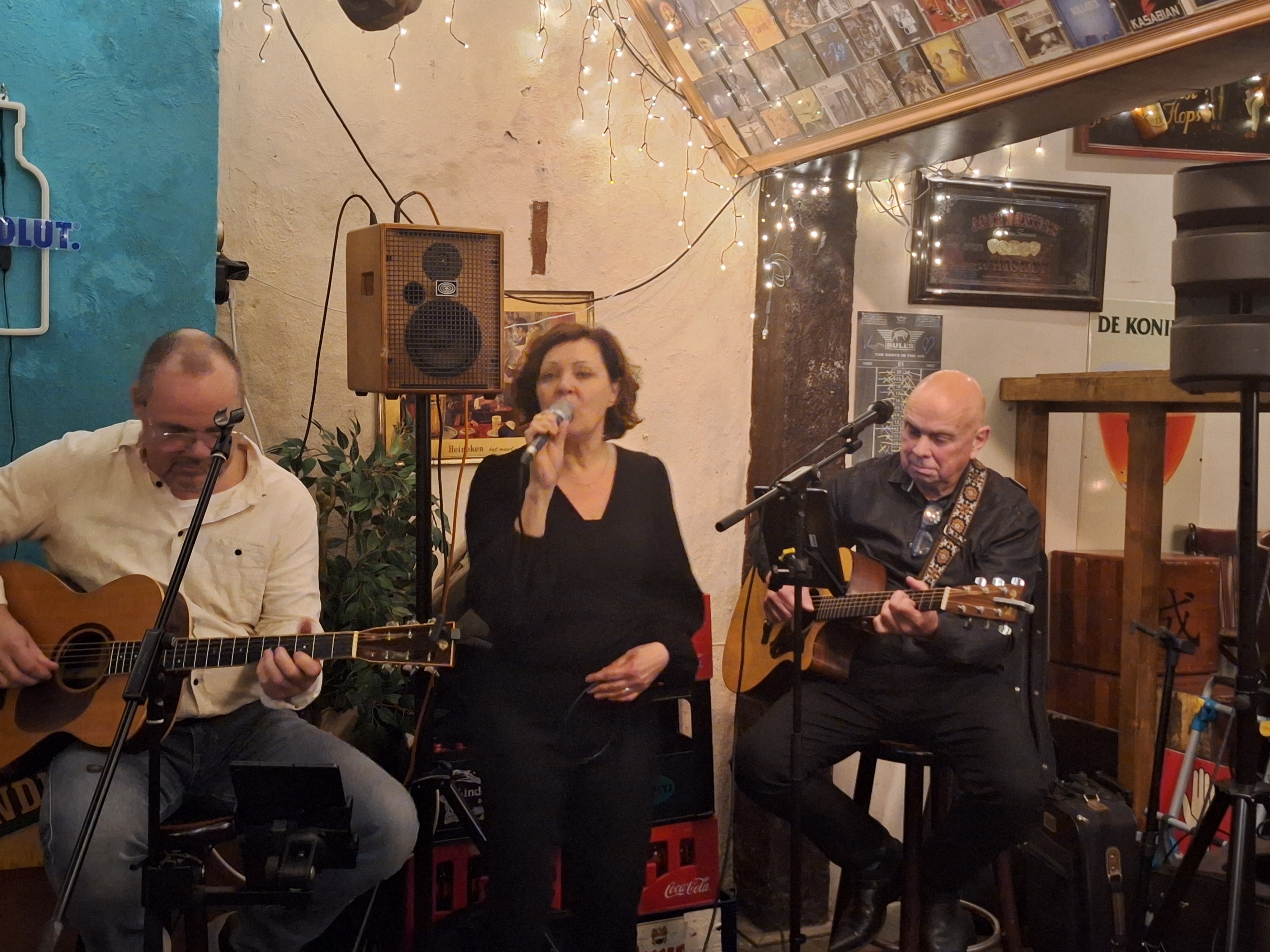 En mocht ik dan vrijdagavond lekker mee blèren met de muziek van “Van Dik Hout”, zong ik zaterdagmiddag zachtjes mee met Eddy in café de Joffer. Helemaal een verrassing was het niet dat hij mij wel vroeg om een liedje te zingen. De vorige keer had hij het wel gezegd maar dit keer had hij Paul meegenomen met wie hij zijn liedjes zong. Dus ik ging er vanuit dat het er niet van zou komen. Nou dat had ik goed mis want ja hoor ik werd uitgenodigd om toch maar te komen zingen. Het liedje van Jan Rot “De Achtbaan” met behulp van de telefoon voor de tekst. En ik was er zelf niet ontevreden over.